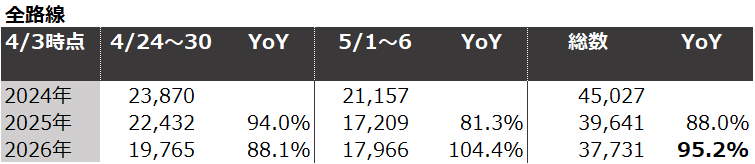 ■【日並びの偏り】連休後半(5月2日~6日)に予約集中、最大で前年同期比約1.9倍に
